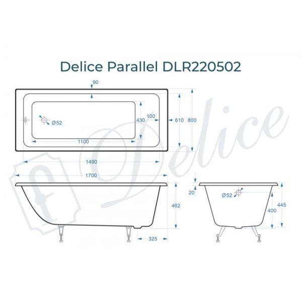 Ванна чугунная Delice Parallel DLR 220502 170x80см белый купить