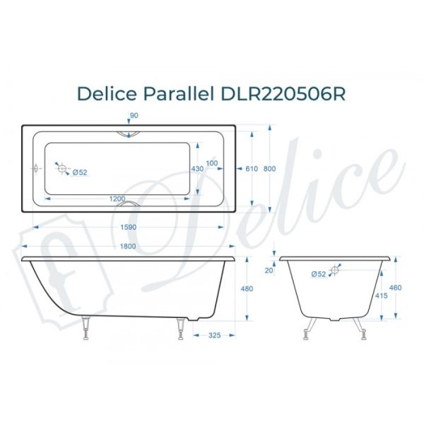 Ванна чугунная Delice Parallel DLR 220506R 180x80 с ручками купить