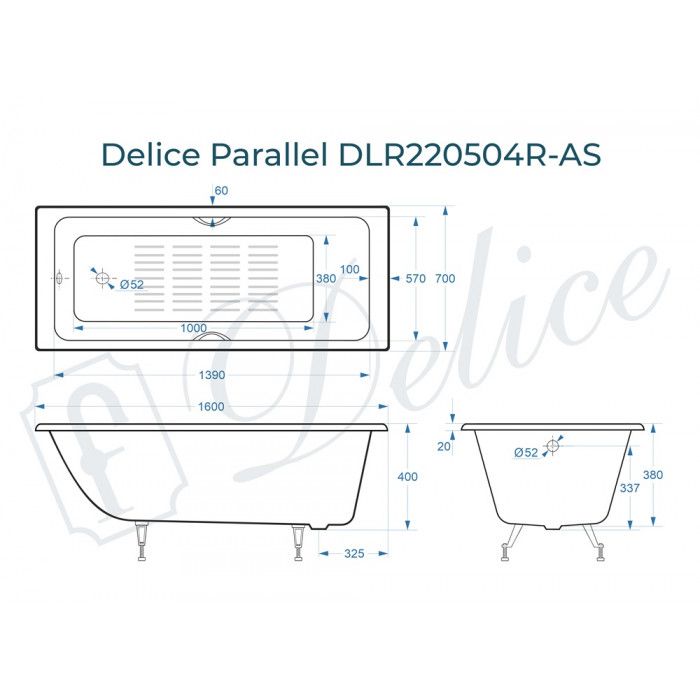 Ванна чугунная Delice Parallel DLR220504R-AS 160x70 с ручками купить