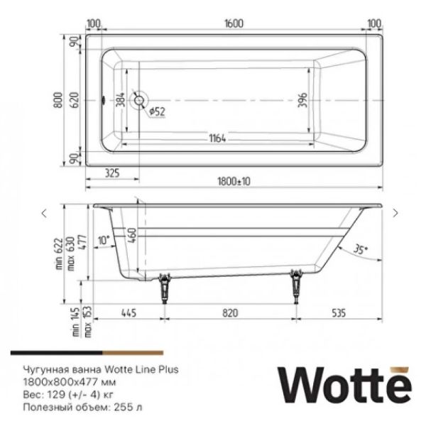 Ванна чугунная Wotte Line Plus 180x80 Ванна чугунная Wotte Line Plus 180x80 Казань 60619.88 73036.00 Wotte
