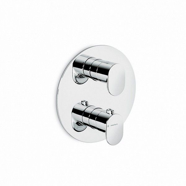 Встраиваемый термостатический смеситель для душа с регулировкой температуры, запорным клапаном и регулировкой напора воды. Соединение 3/4" (вход и выход) с переходником на 1/2".