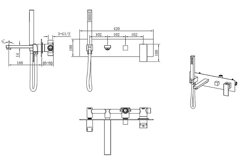 Смеситель для ванны Boheme Qubic 474-2-GM с душевым гарнитуром.Характеристики:Цвет: антрацит.