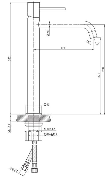 Высокий смеситель для раковины Raiber Graceful RP-002 хром купить