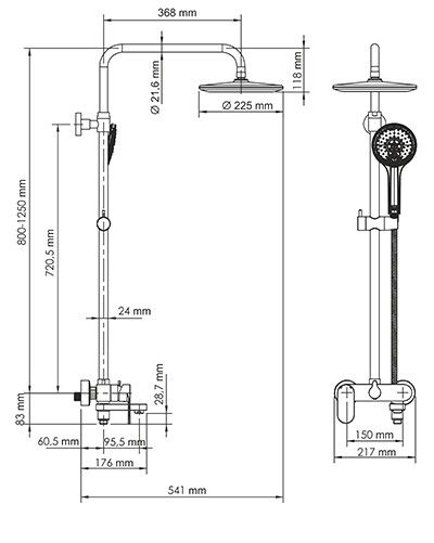 - Размер верхнего душа, см:225