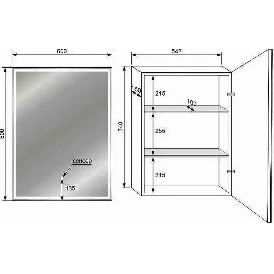 - Тип:зеркало-шкаф с подсветкой