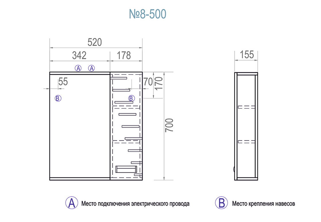 Зеркальный шкаф Vigo Diana 500 правый купить