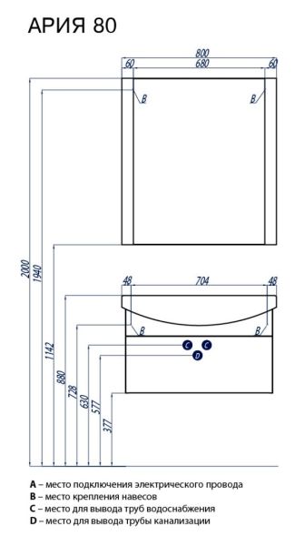 Зеркало Акватон Ария 80см белый 1A141902AA010 купить