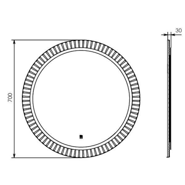 Зеркало Comforty 00-00014158 70 смЗеркало Comforty Мадрид 70 00-00014158 с подсветкой.Высококачественное зеркальное полотно с амальгамой на основе серебра. Зеркало оборудовано ореольной и фронтальной LED подсветкой. Зеркало совмещает в себе множество современных функций, включая диммирование, антизапотевание и бесконтактный выключатель, что делает их удобными и стильными для различных интерьеров. Основа зеркала из МДФ фрезерована радиальным узором в виде лучей и облицована белой матовой пленкой.Функция диммирования - данная функция позволяет регулировать яркость подсветки от минимального до самого яркого, что особенно удобно для создания <комфортного освещения.Функция антизапотевания - зеркало с антизапотеванием обеспечивают комфортное использование в условиях повышенной влажности, не требуя дополнительного времени на очистку от конденсата.Бесконтактный выключатель - использование бесконтактного выключателя обеспечивает удобство в эксплуатации, позволяя включать и выключать подсветку простым движением руки, при этом поверхность зеркала остается чистой.Характеристики:Материал корпуса: МДФ.