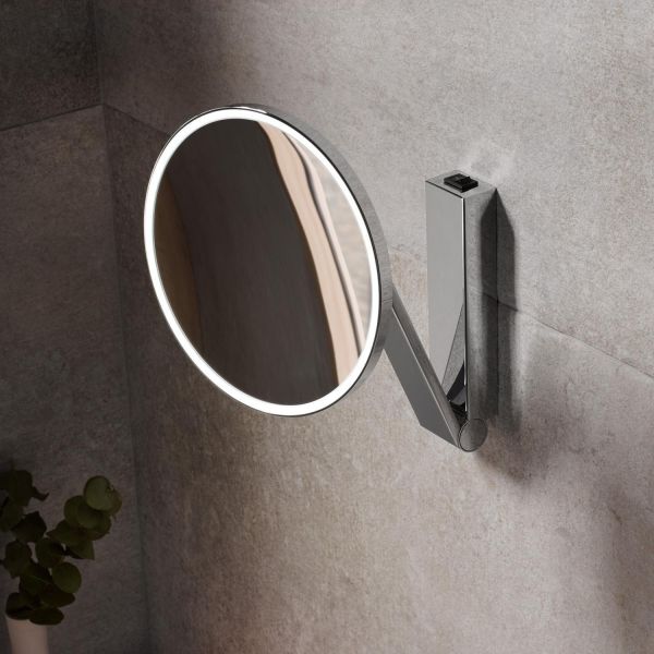 Зеркало косметическое Keuco iLook move 17612079004 хромKeuco iLook_move 17612079004 Зеркало косметическое с подсветкой (нержавеющая сталь). 1 цвет подсветки 6500 Кельвин (дневной свет), включение с помощью выключателя рычажного типа, настенная модель на кронштейне с шарниром, регулируется в трех плоскостях, одностороннее зеркало, вогнутое, коэфффициент увеличения x 5. Управление: встроенным рычажным выключателем. Электроснабжение: трансформатор 12 V интегрирован в настенный держатель. Напряжение на входе: 220-240 В. Подсветка: Светодиод 4,5 Вт (срок работы > 50.000 часов).