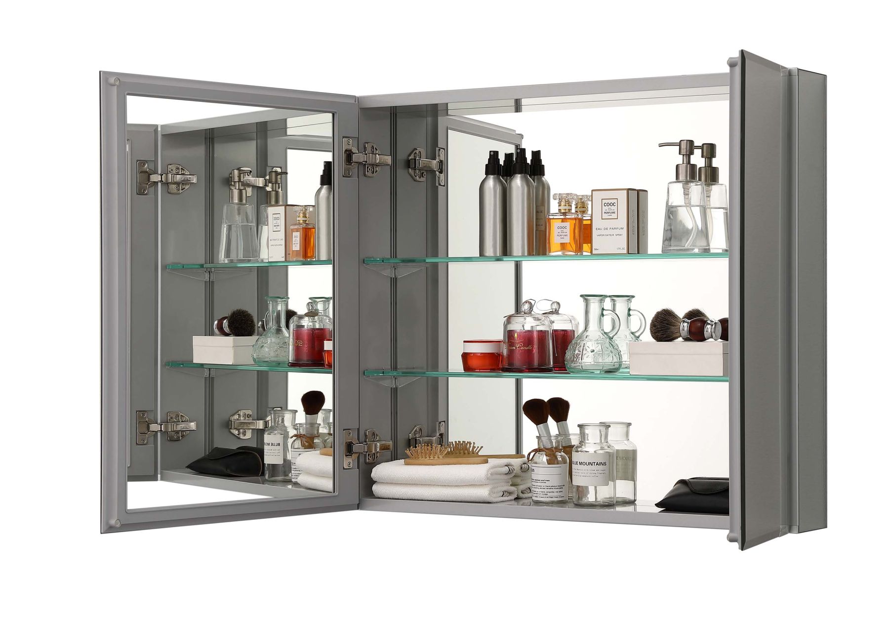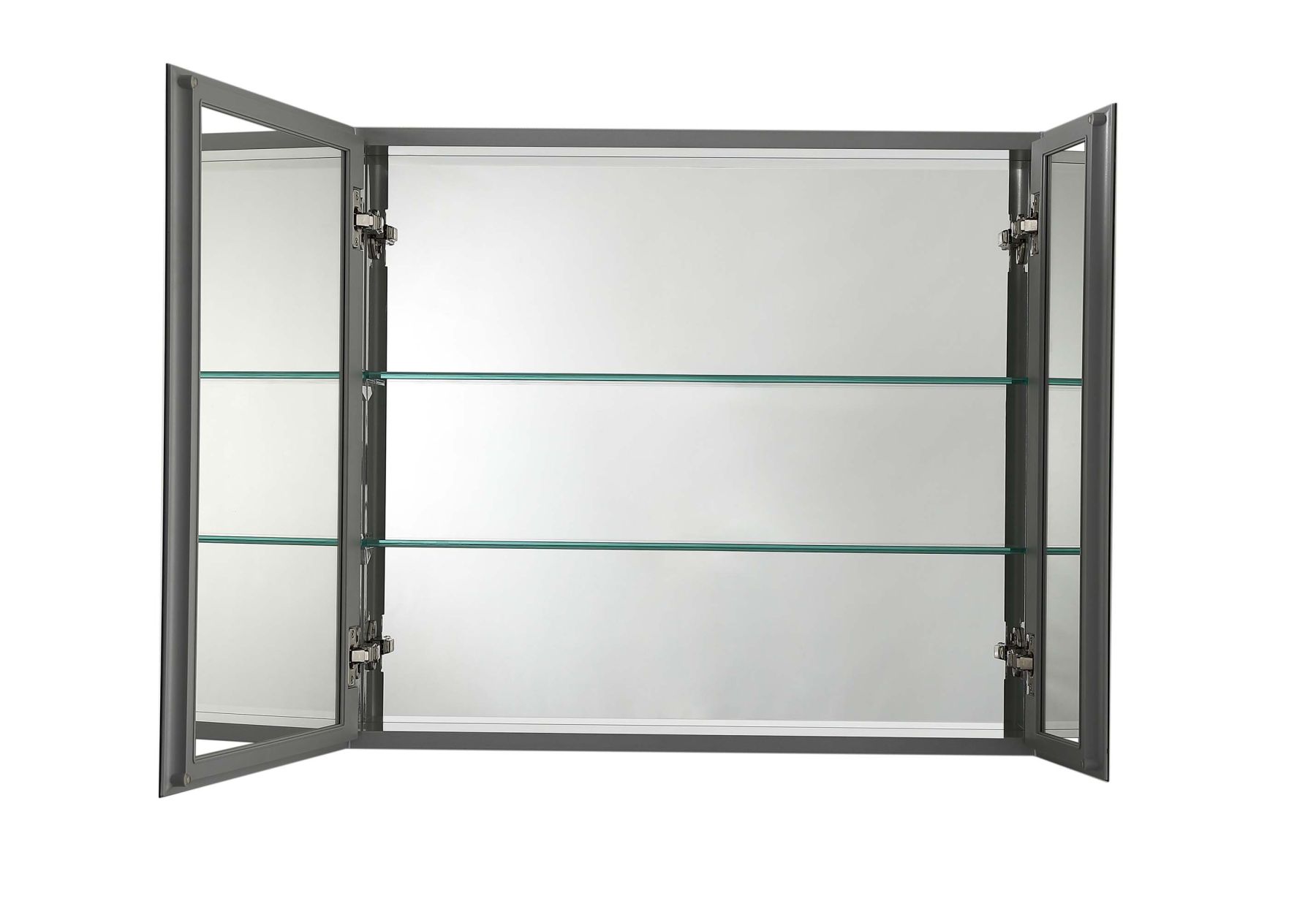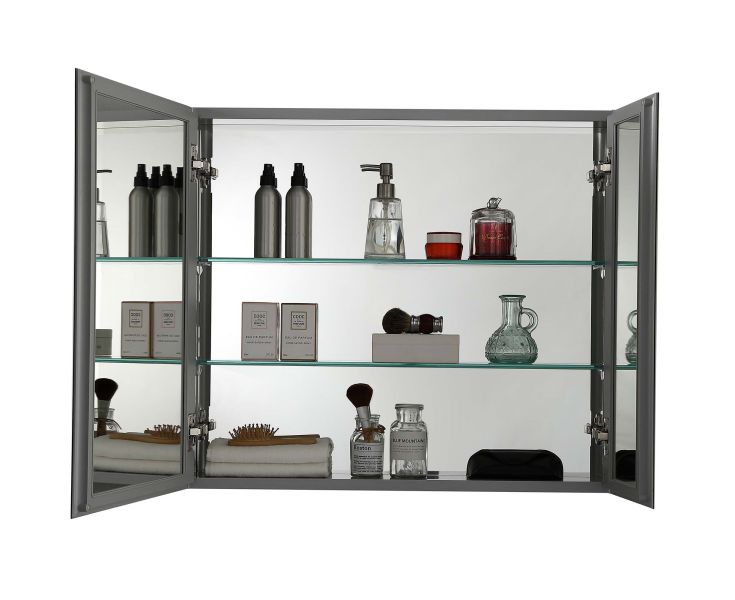 Зеркальный шкаф оснащен практичными полочками, которые позволяют организовать хранение различных предметов — от косметики до банных принадлежностей. Пространство внутри шкафа можно легко настроить под свои нужды, благодаря регулируемым полкам.