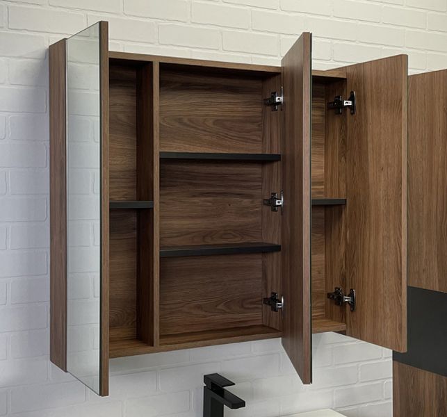 Зеркало-шкаф Comforty Соло 00-00010980 88 смЗеркало для ванной комнаты с тремя створками. Створки оснащены петлями с плавным закрыванием. Высококачественное зеркальное полотно с амальгамой на основе серебра. Обе боковые створки зеркала открываются наружу. У средней центральной секции петли справа. За широкой створкой две горизонтальные полки, за узкими по одной.